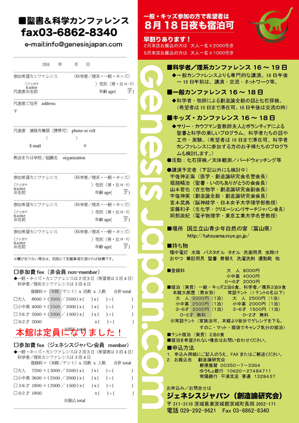 ☆恐竜は、ノアの洪水を示す証人であることなど、恐竜についての理解が変わりました。→聖書&科学カンファレンス感想